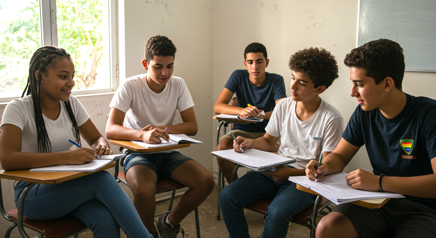 O mesmo vale para as pessoas. Os bancos de imagem são dominados por rostos e contextos de outros países, que não representam a nossa população. Quando você precisa mostrar estudantes brasileiros reais, com nossa diversidade, nosso jeito de se vestir, fica praticamente impossível.